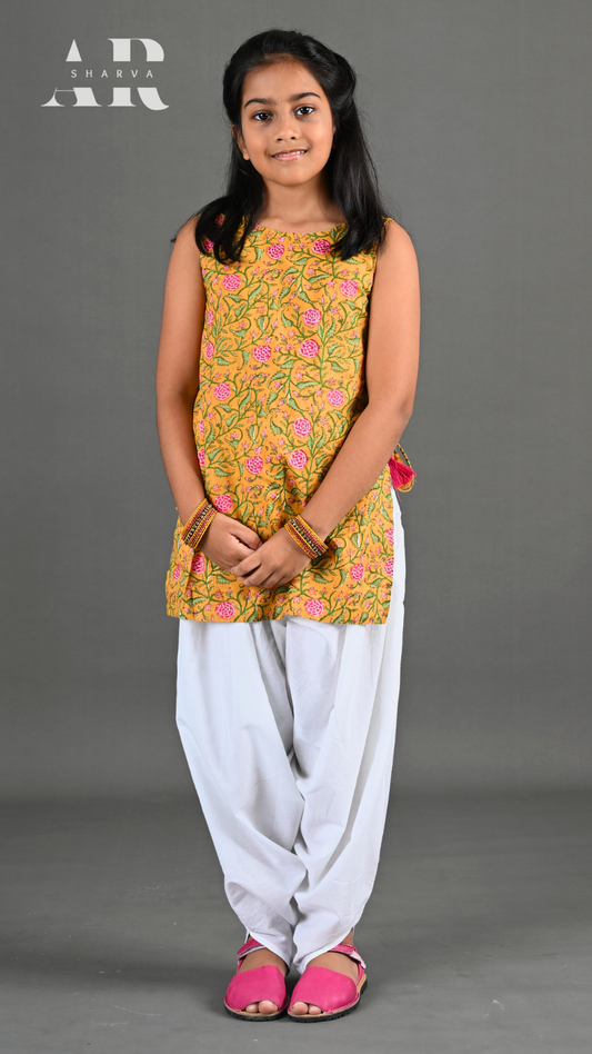 Yellow Floral Kurta Dhoti Set
