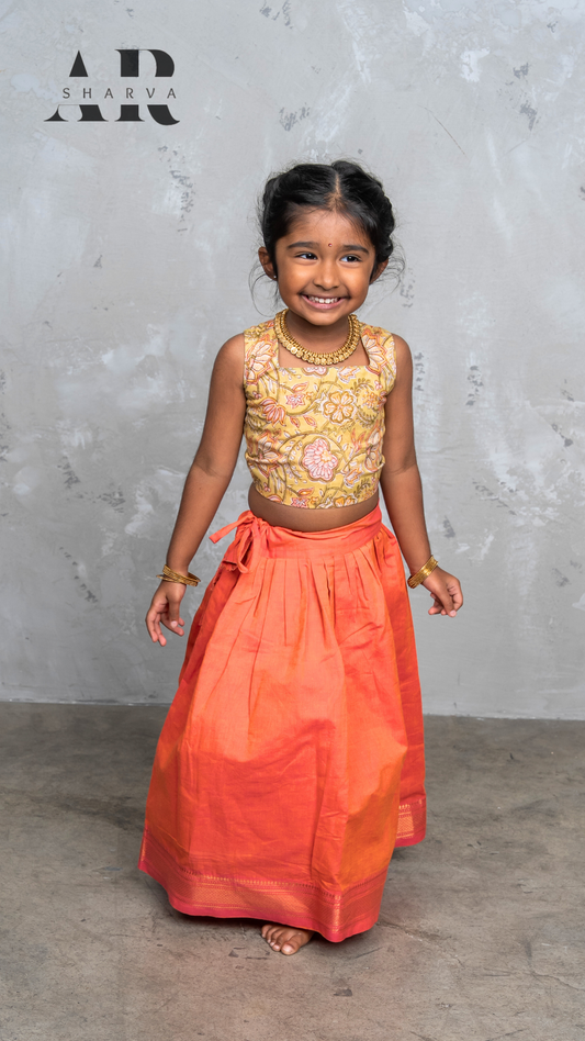 Olive Florals & Tangerine Pavadai Set