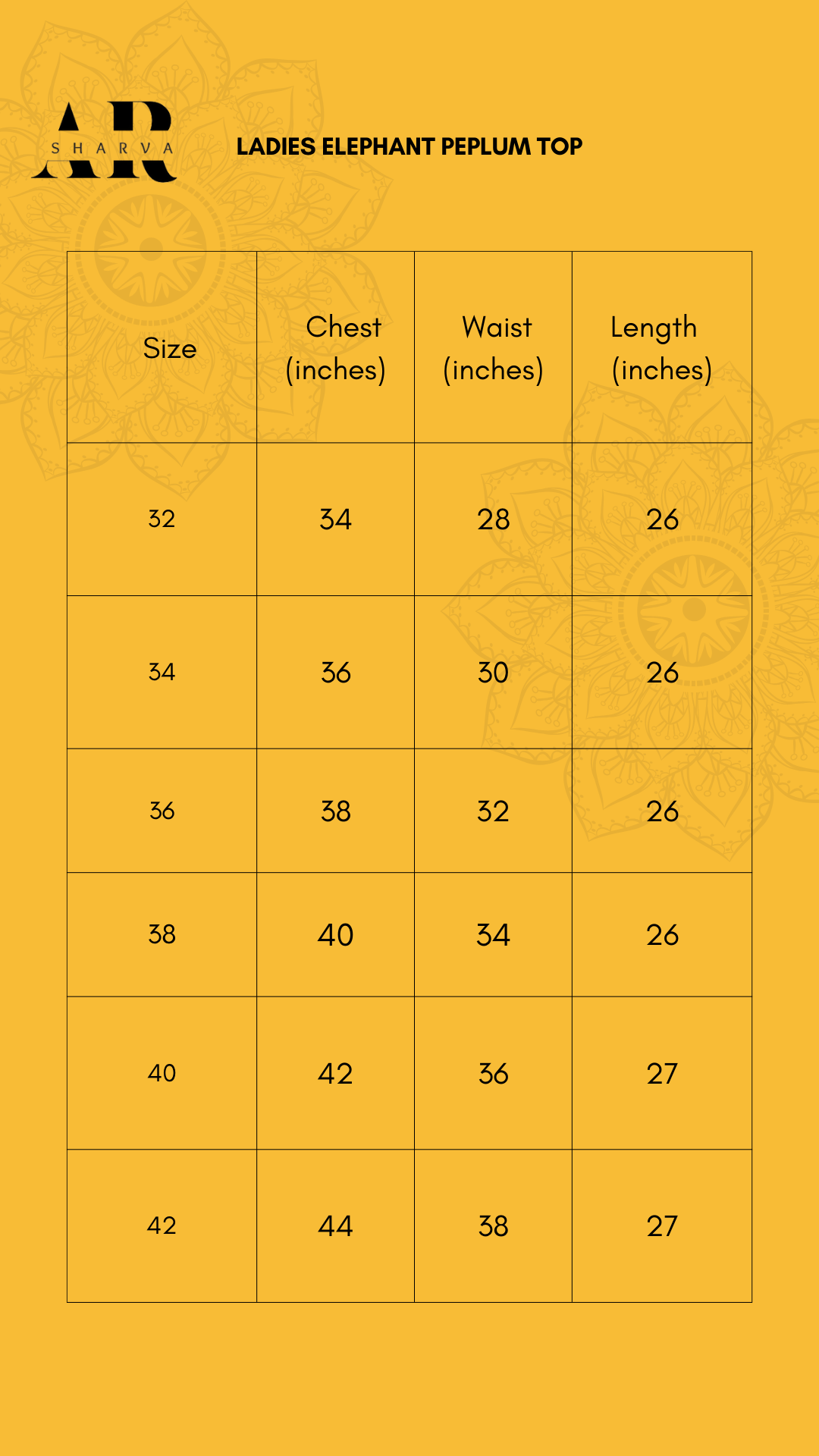 A cheerful yellow cotton top, featuring playful hand-block elephant prints and a breezy, flared silhouette. Effortless, fun, and comfortable — perfect for pairing with denims or skirts for a chic casual vibe. A matching girls peplum top is available too!